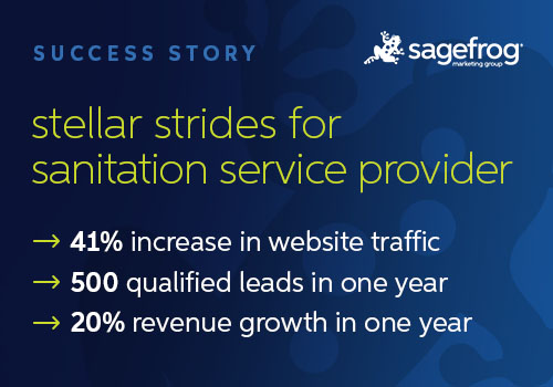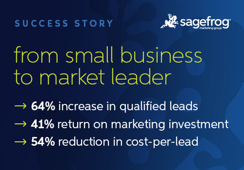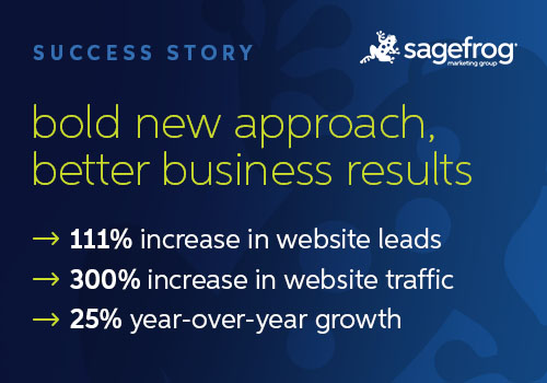 Sagefrog Marketing Group is a top-ranked B2B marketing agency with specialties in healthcare, technology, industrial and business services. With offices in Doylestown (PA), Philadelphia (PA), Princeton (NJ), Boston (MA), and Washington (DC), we are dedicated to accelerating client success through B2B brand building and integrated marketing services.